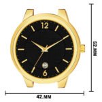 Step up your wrist game with a perfect blend of fashion and function. Featuring a striking Black colour round dial and a rich Golden Stainless Steel faux leather strap, this watch is crafted for those who appreciate attention to detail and comfort. The mineral glass shield adds durability, while the quartz movement ensures precise timekeeping every day.