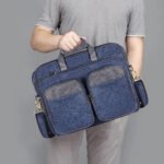 Premium Linen Fabric Blue & Grey Color Messenger-Laptop Bag – Stylish and Functional