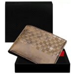 Brown 3D Emboss Square Bi-Fold Faux Leather 3 ATM Card Slots Wallet For Men WL36