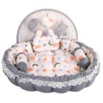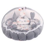 Grey 3 Pillow with Mosquito Protection Net & Round Shape Cotton Baby Bed for 0-1 Year BB22