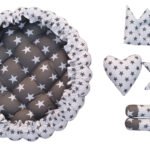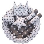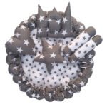 Give your little one the ultimate comfort with this soft and breathable cotton baby bed set. Designed for newborns and toddlers (0-1 year), this 39×39-inch round bed comes with 2 rolling pillows and 3 designer pillows featuring an adorable stars pattern. Its reversible design allows for dual-sided use, making it both stylish and durable.