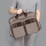 Premium PVC Coated Fabric Beige & Brown Color Messenger-Laptop Bag – Stylish and Functional