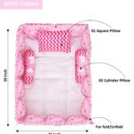 • Complete Set: Includes a 30 x 22-inch rectangle bed, 2 rolling pillows, and 1 rectangle-shaped pink pillow In Baby Bed.
