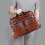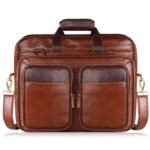 Premium Glossy Faux Leather Tan & Black Color Messenger-Laptop Bag – Stylish and Functional