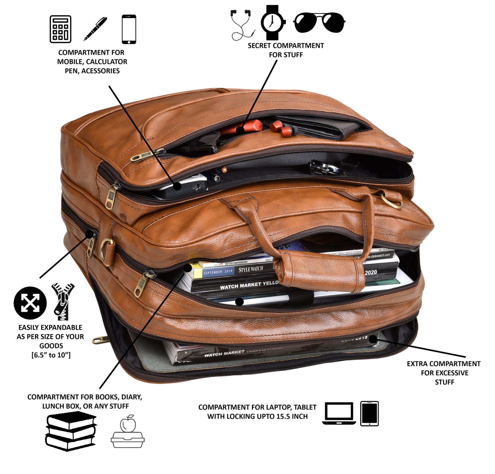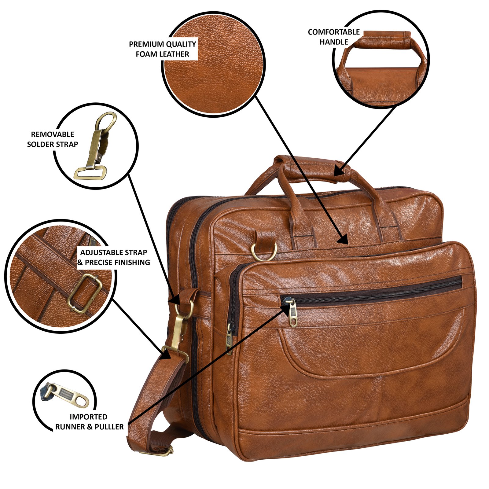 Experience the perfect blend of style and functionality with the LOREM BG07 Glossy Tan Color Messenger-Laptop Bag. Crafted from high-quality faux leather, it features strong Velcro, a smooth zipper, and reinforced stitching for lasting durability. The water-repellent design and shockproof foam padding ensure your devices stay safe and dry.