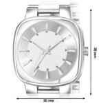 Step up your wrist game with a perfect blend of fashion and function. Featuring a striking White colour Square dial and a rich Silver Stainless Steel strap, this watch is crafted for those who appreciate attention to detail and comfort. The mineral glass shield adds durability, while the quartz movement ensures precise timekeeping every day.
